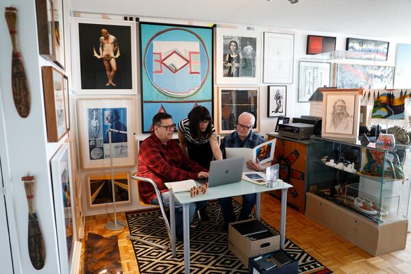 The good-humoured Ace and Truelove have been together since 1995, and in their Rideau Canal-adjacent Ottawa condo since 2004. Collecting art is a shared passion, and the couple have amassed more than 350 works at this point – many acquired through trades with friends and colleagues, and about 90 per cent by Indigenous artists. The works, by Carl Beam, Michael Belmore, Robert Houle, Rita Letendre and others, hang salon-style in groupings. “The entire apartment is covered floor to ceiling in every room,” Ace says.