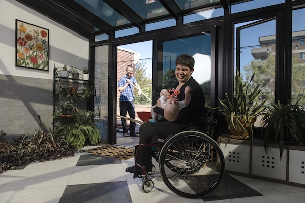 Phillips, her partner Mikkel Paulson and their daughter Margaret Paulson in their solarium in their home in Outremont, on May 14.Andrej Ivanov/The Globe and Mail