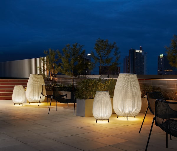 Extend the livability of your outdoor spaces with Scandinavian-inspired outdoor furniture and cozy accoutrements.