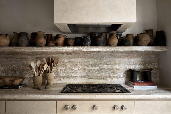 Her team of 10 is spread across two floors. Upstairs, the design team manages projects while the first floor is devoted to products, including a showroom and space for online orders to be packed up and shipped, mostly to clients in the United States. Nearly every surface is lime-washed and all of the decorative objects she sells – including vases, catch-all dishes, marble side tables and collectible pieces of vintage furniture – have one common feature. “I love a patina,” she says.