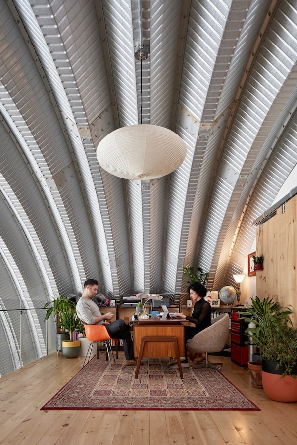 Torben Eskerod, an architect at studio VBA in Copenhagen, agrees, having recently designed a Quonset-style country house in Denmark. “There is no strong tradition for Quonset housing in Scandinavia,” he says. “But we are glad our clients went along with this bold idea. The domed section gave our client an extraordinary space. At the same time, it connects to nature and gives an overwhelming experience of light and space inside.”