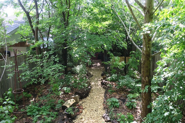 After: Johnson's yard in 2020, with a native plant woodland garden.Lorraine Johnson/Supplied