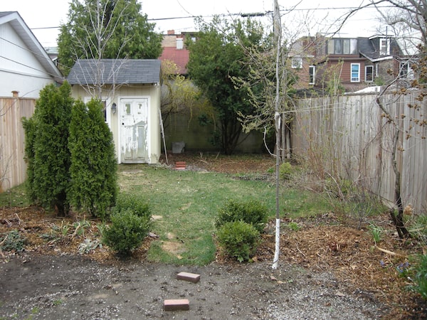 Before: Lorraine Johnson's backyard in 2010, with a lawn and non-native plants.Lorraine Johnson/Supplied