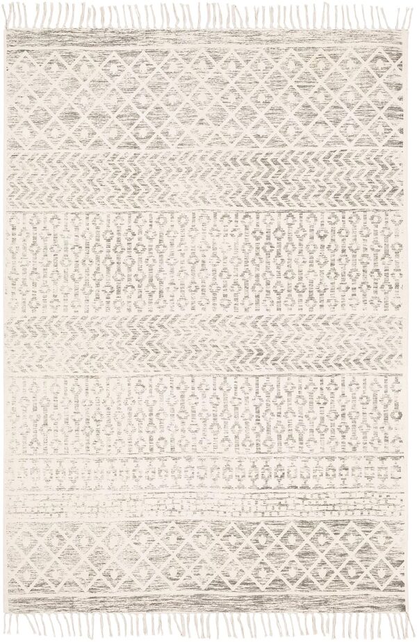 This cotton rug, handmade in India with a flatweave, distressed design in a cream colour can be a highlight in a neutral or boho-style room.