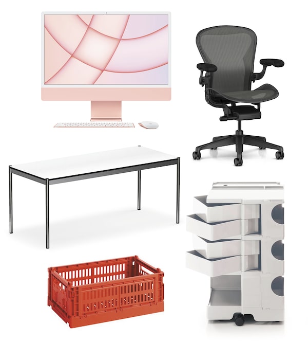 Roche likes the flexibility of working on her laptop, but also has a desktop computer with a larger screen for design work and video meetings. Apple iMac, from $1,699 through apple.com.