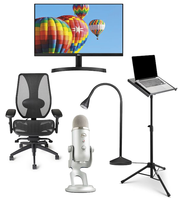 He also recently purchased a portable tripod laptop stand which allows him to stand up during calls where he doesn’t need to take notes. “It’s my makeshift standing desk,” he explains. On-Stage LPT7000 laptop stand, $89.27 through amazon.ca.