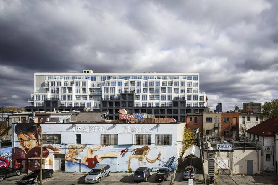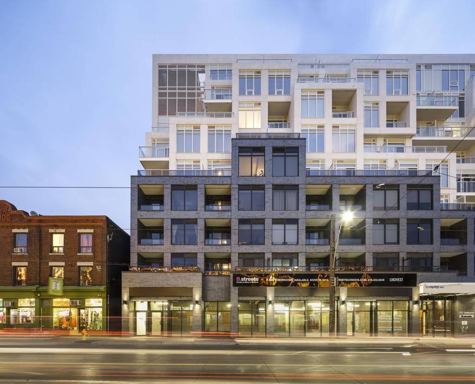 It’s Lindvest Properties Ltd.’s recently completed B Streets Condominiums, designed by a team led by David Pontarini, principal in the Toronto firm of Hariri Pontarini and an architect best known for his elegantly soaring residential towers. Some density of the sort beloved by developers has already come to this sensitive corner, it appears, without anyone getting into a tizzy or even taking much notice.