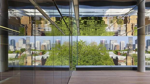 A roof deck halfway up the Rotman building offers views that connect the institution to the city around it.