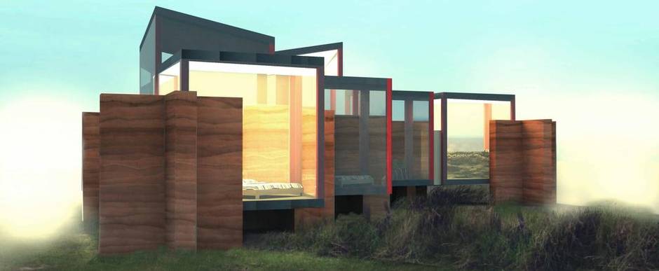 The jagged geometry of Plus House, by Christopher Tron and Javier Huerta-Juarez, on the other hand, is memorable. It is based on the gridded layout of the building’s most conspicuous structural elements, seven rammed-earth piers shaped, in plan, like Greek crosses. The scheme is simple, but not simplistic, and, although the proposed dwelling is not large, it has firm authority.