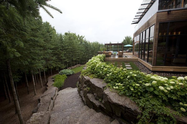Sandstone and ipe surround the swimming pool, which is set on a terrace overlooking the forest.photos by Deborah Baic/The Globe and Mail