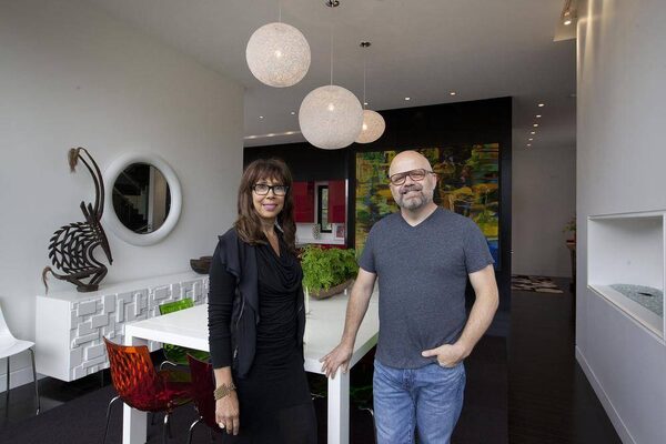 Charlene Zivojinovich and Dimitri Papatheodorou stand in the living room of Ms. Zivojinovich and Alex Lifeson’s country home.Deborah Baic/The Globe and Mail