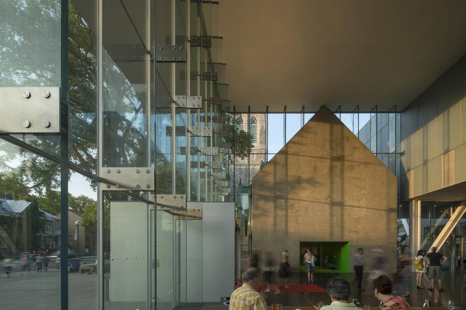 Ironic praise from the Japanese-American partner in a Dutch-based, globe-spanning architecture firm. But it may be that, in trying to engage with a global conversation about museums, MNBAQ has built itself a very fine building to serve its local community and those tourists who make their way here. On the museum’s official opening, Quebec’s Fête Nationale June 24, crowds lined up for hours to visit. Pierre Lassonde himself was in the crowd, largely unnoticed and looking anxiously pleased as excited museumgoers – young, old, the ones I spoke to all locals – engaged with the new treasure that the global discourse of architecture and aspiration had dropped in their city. It glittered.