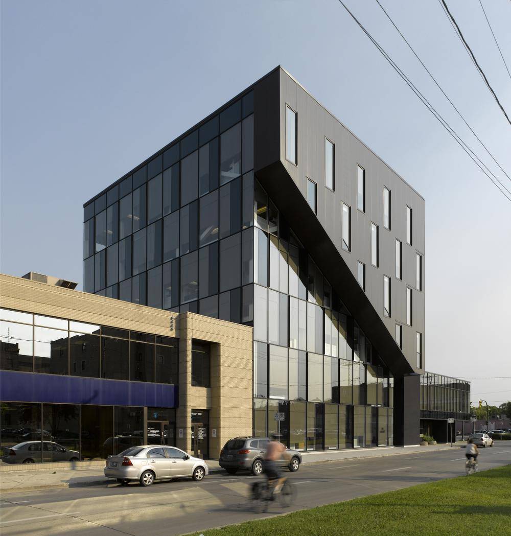 After a couple of years working with the local firm Cohlmeyer Architecture, Hurme and Radulovic went out on their own in 2007, and were soon frantically busy; their friend Neufeld joined shortly afterward. For a collective name, the trio chose their incorporation number. As it turns out, they had also chosen a good moment: The past decade has seen a rise in construction in central Winnipeg, and a highly visible set of new building projects, from the Esplanade Riel by Étienne Gaboury to the Canadian Museum for Human Rights.