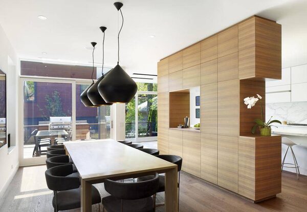 "Often, the warmth of wood balances the crisp lines and open spaces of modern interiors, but that is only one part of the reason we use wood," says Heather Dubbeldamm, founder of Dubbeldam Architecture + Design, in Toronto. For the design of a house in the city’s Annex neighbourhood last year, Dubbeldam added a room divider made of walnut. The horizontal lines of the grain help to visually elongate the room. dubbeldam.ca