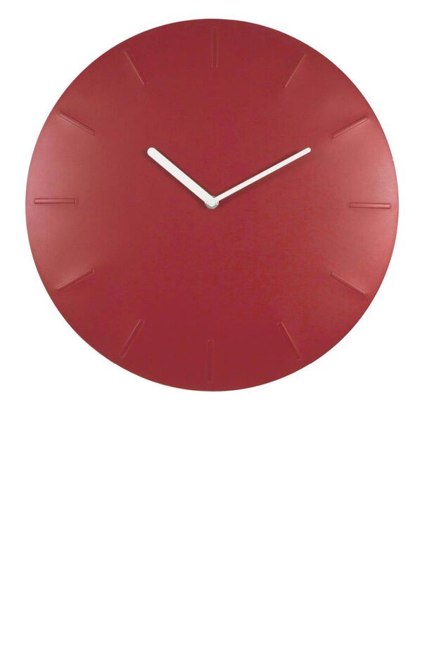 <b>BENDING TIME</b></br> Combining industrial style with vibrant colour, EQ3’s bent-metal Juniper clock, 16 inches in diameter and also available in blue, is just the thing to punch up a blank white wall. $49.99 at EQ3.