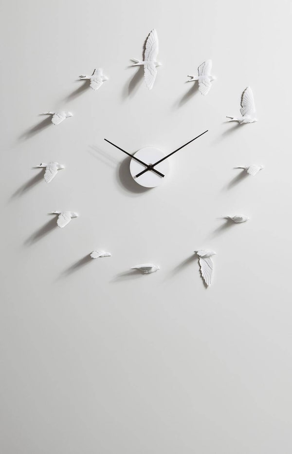 <b>FLIGHT PATTERN</b></br> A dozen individually mounted swallows soar around the hands of Haoshi Design’s Swallow Clock, handmade in Taiwan. (And if birds aren’t your thing, there’s also a goldfish version.) $149 (U.S.) through www.gnr8.biz.