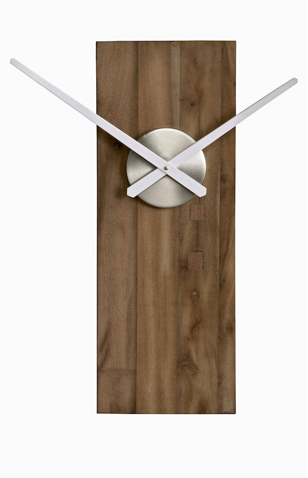 <b>BOARD ROOM</b></br> Swedish rusticity meets mid-century chic in CB2’s 9-by-24.5-inch Allways Hanging Clock, which features a recycled-saal-wood body (and is as good-looking hung horizontally). $119 at CB2 (www.cb2.com).