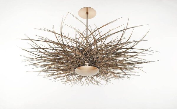 Their Rue Picot chandelier, though, is a rare work available through retail. That doesn't make it less special. One might take a full 40-hour work week to weave together. Each steel tendril is cut to length, patinated, then hand-tied into place with little knots. The finished piece is incredibly beguiling: Because of the delicacy of the assemblage, the metal rods appear wispy, not rigid, whipping around each other like starlings fluttering through the air. Starting from $4,800. Through avenue-road.com.