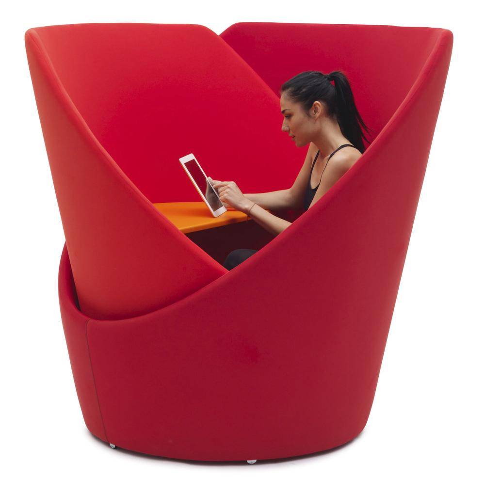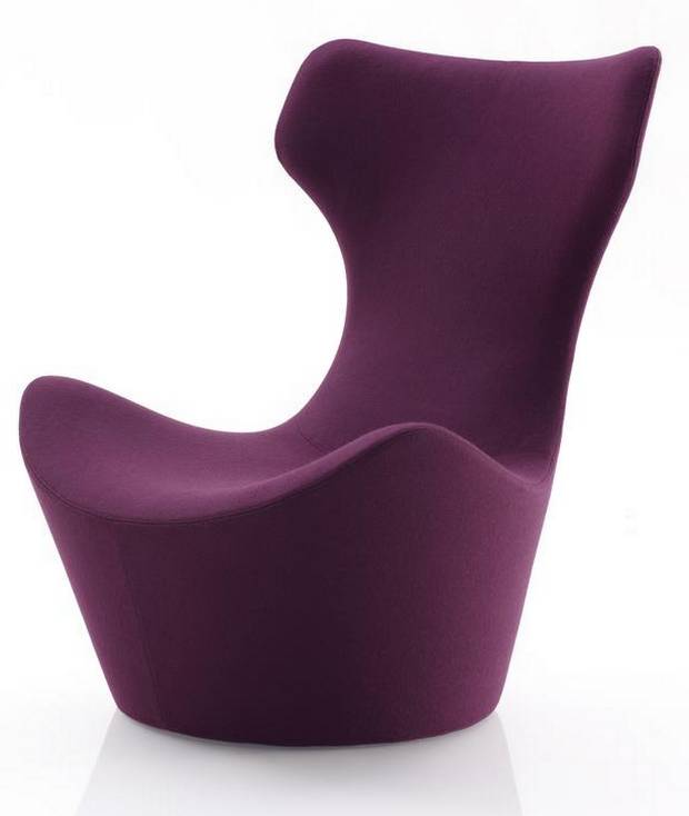 Instead, his Grande Papilio chair has a high, slightly winged back for a sense of privacy, and his Papilio bed has a cushioned, winged headboard to support those increasingly watching a screen in the bedroom.