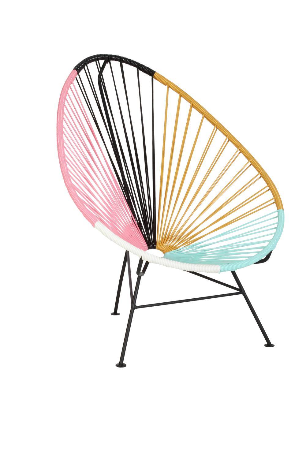 The egg-shaped Acapulco lounger is a symbol of Mexico’s heyday. The piece was originally designed in the 1950s in its namesake resort town, when Liz Taylor and Brigitte Bardot frequented the area’s white-sand beaches. CB2 has updated and re-released the mid-century classic with handwoven PVC cords in a modern palette of pink, black, orange and blue. $249. Through CB2.com.