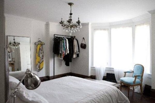 "I made the clothes rack myself with black pipe. I love open storage for clothing. If I can't see it, I forget about it. The industrial vibe reminds me of when I lived in New York – my East Village days."