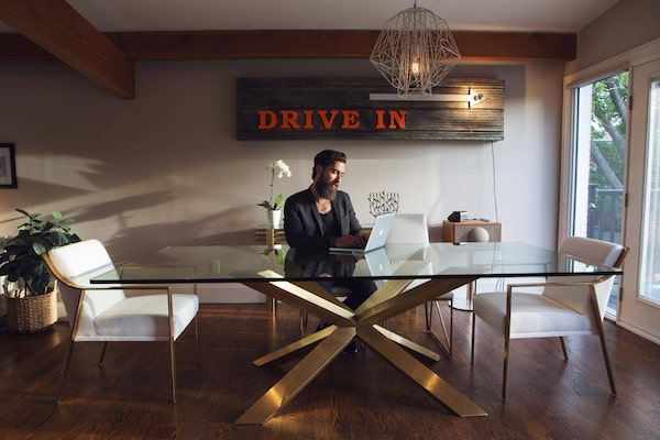 "I was walking down Queen Street West one day and walked into Commute Home, then my favourite furniture store, to look around. That's when I saw this sign and I just had to have it. The galvanized steel and pop of orange really caught my eye. I also loved that it said 'DRIVE IN,' and I thought that it would be a great addition to the dining room. But I will admit that I didn't think the wife would go for it. So what I did was I brought it home and I leaned it up against the wall from the floor and I let it sit there for three months until everyone got used to it. I then put it up on the wall and my wife couldn't be happier."
