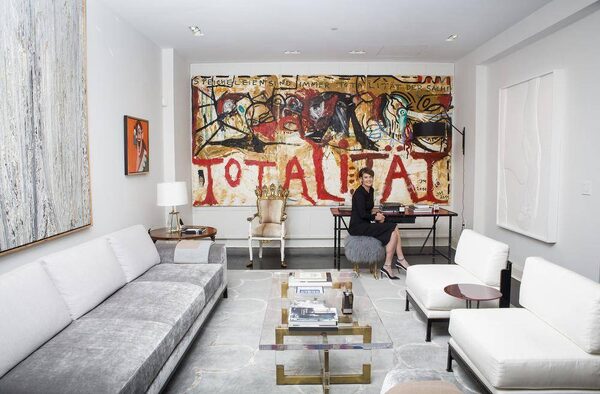"That's by Jonathan Meese, a German painter Joe and I collect. We love modern art, and he is one of the artists we have works by. We bought it at Art Basel and we when we saw it we knew we had the perfect wall for such a large painting. I love the power of it. There is strength in the bush strokes and all the graffiti going on. It's very New York to me, with its rich reds and blacks."
