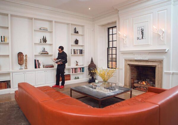 "It was custom made for me by my good friend Daniel Perez in Montreal. It's spectacular. It's the central piece in the room. It surrounds the entire fireplace area. The curved shape looks vintage at the same time as being sleek and modern. It's an amazing combination and also very inviting to sit on."