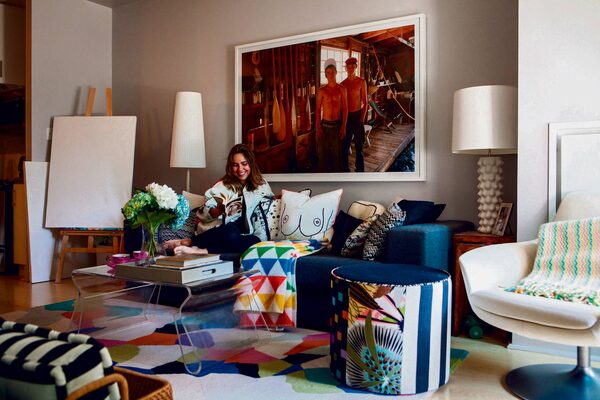 "This geometric rug is my design. It's got all the pretty colours that I love. I had it made at Reznick Carpets here in Toronto."