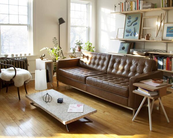 "This is an EQ3 sofa called Reverie. It's the same sofa used on the cover of EQ3's annual catalogue in 2012/2013, the year of its debut. It is a classic design. I like the tan leather."