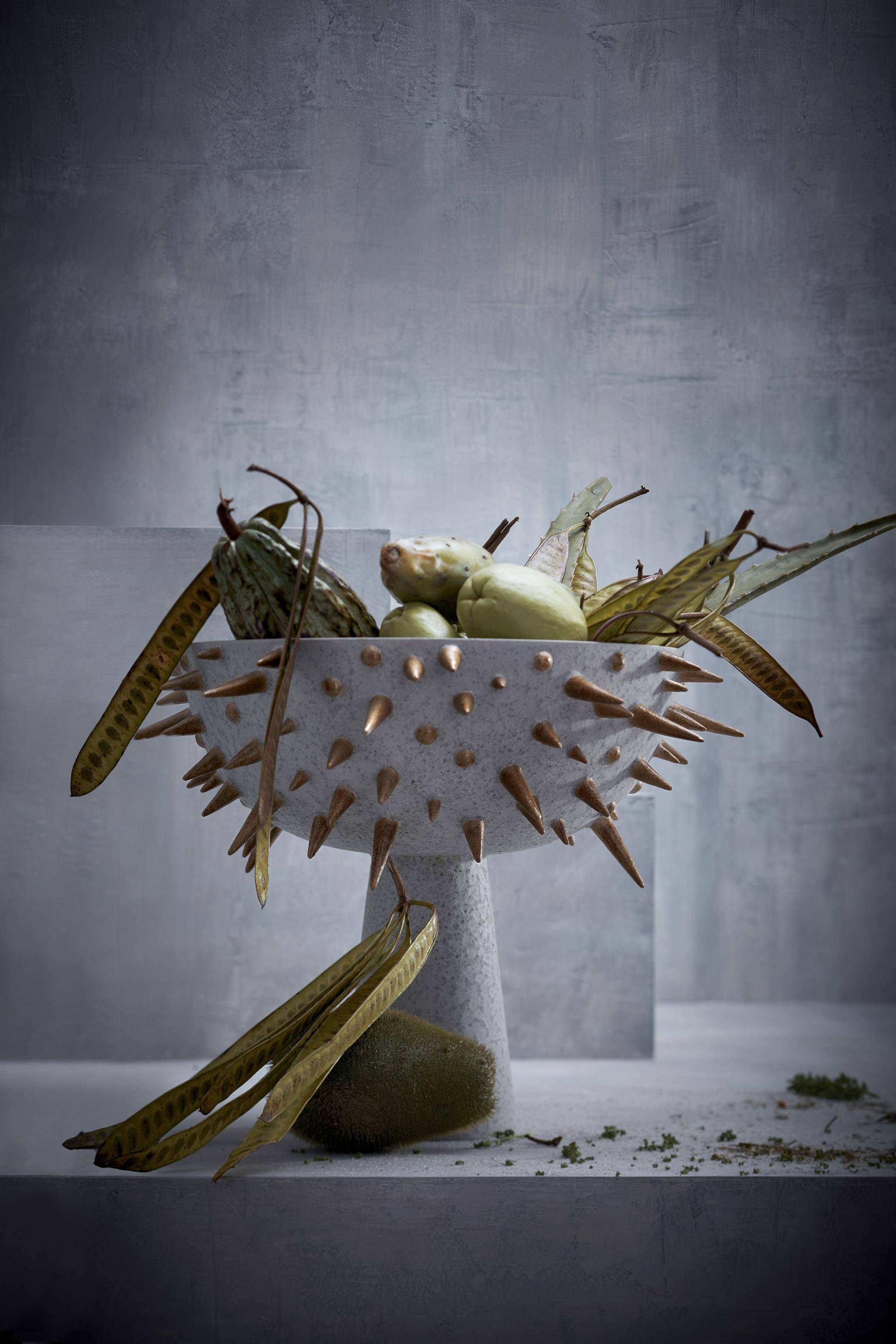For Costa Voyatzis, living as we do, staring at screens all the time, tactile experiences have become of paramount importance, which has led to textiles and materials seeking to engage and encourage touch. Texture has become a focal point, as in the Else Moss series of vases by Michal Fargo for PCM Design, the essential wallpaper collection by Wall & Deco, and the new, thorny Tulum Celestial collection of furniture, lighting fixtures and ceramics by Elad Yifrach, the creative genius behind L'Objet.