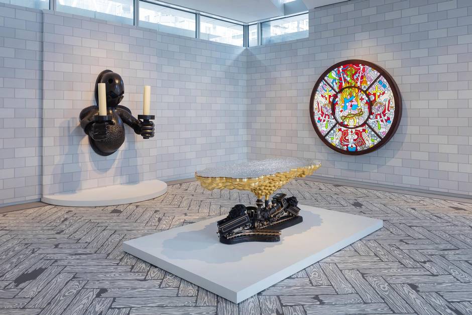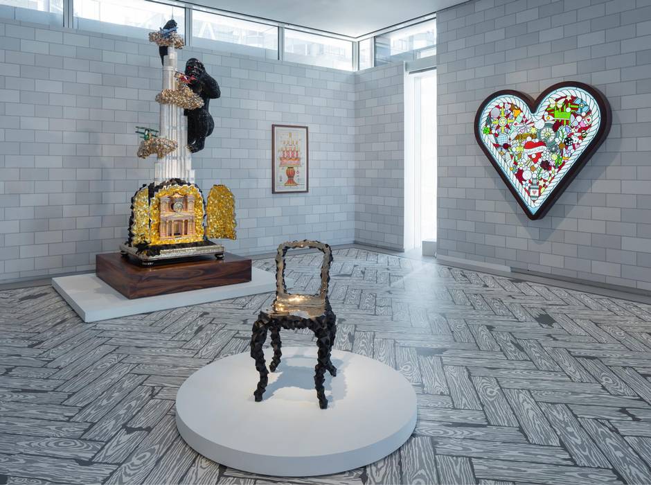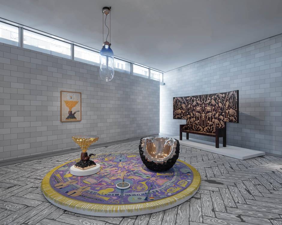 The New York installation features 57 pieces, including sculpture, lighting, furniture, floor covering, wallpaper, drawings and other works produced over the past 16 years.