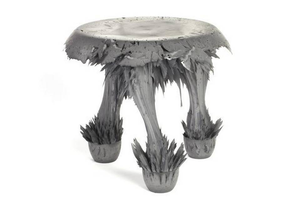 Amsterdam-based designer Jolan Van der Wiel uses a fundamental force of our universe to produce his Gravity stools. A pool of magnetized clay is placed in a pan, then drawn upward by a series of powerful magnets. The gravity-fighting pull creates the jagged legs – each one unique, depending on the play between the counteracting forces. Price upon request. jolanvanderwiel.com.