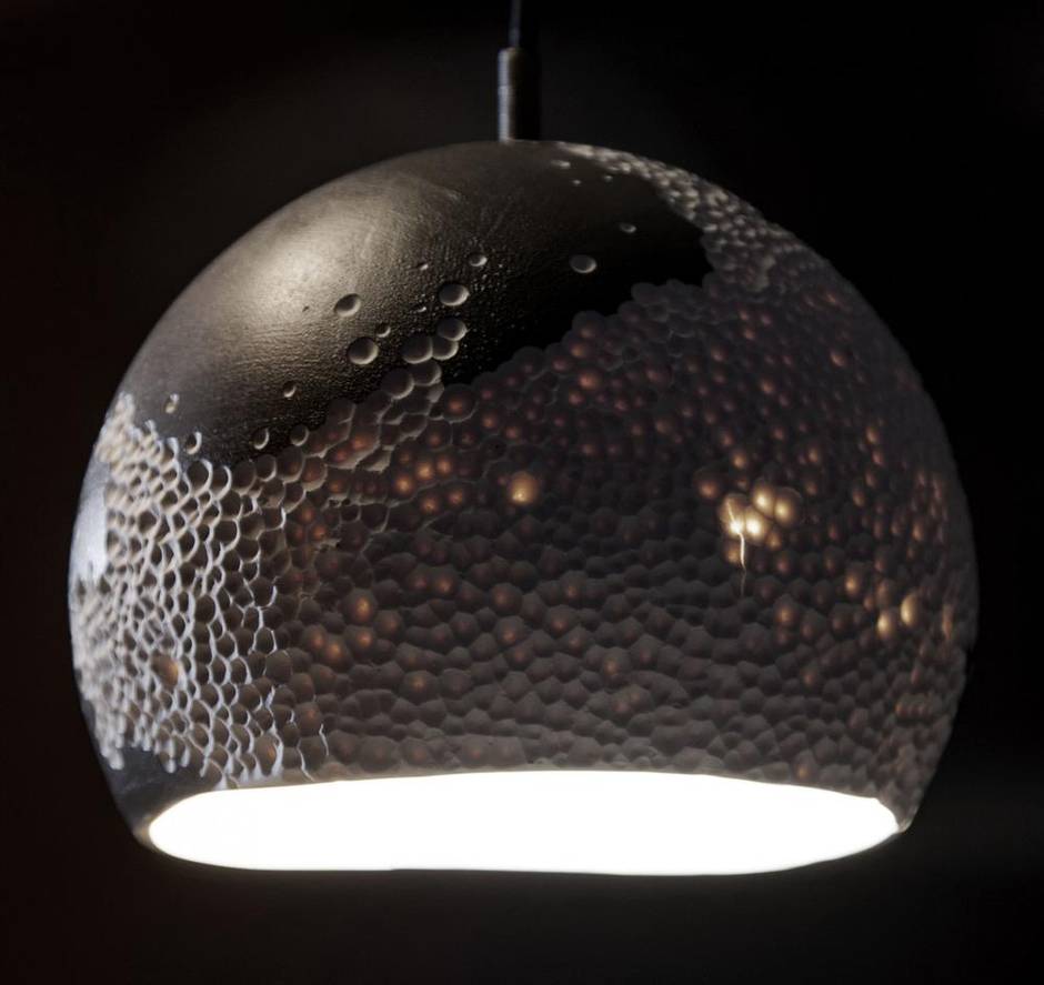 For her series of pendant lights, Toronto-based designer Talia Silva uses porcelain to capture the awe of unidentified astral objects. She hand-works the surfaces of each orb so that it’s elegantly mottled and pocked, resulting in intricate, shadowy surfaces similar to a moon or comet. From $450. Through taliasilva.com.