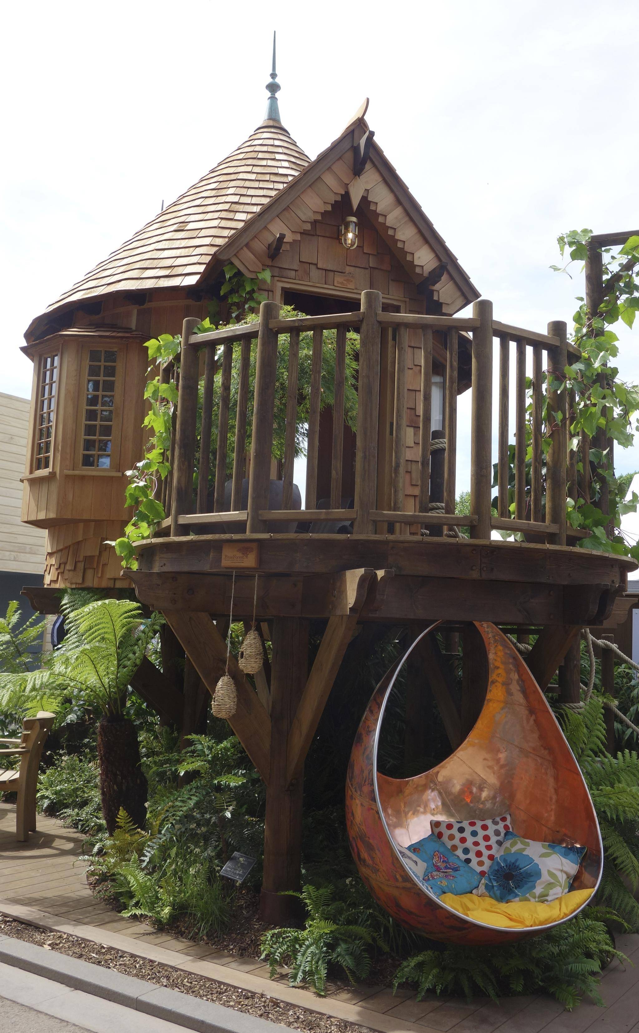 Patio furniture was elevated beyond the typical big-box offering and in many gardens was used as an art form to illustrate the contemplative quality of a garden. In the Poetry Lover's Garden, a metal lounger balanced upon a sphere. In the Gaudi-inspired Viking Cruises Garden of Inspiration, a white geometric chaise stood in stark contrast to the colourful, art nouveau mosaic that ringed an orange tree. The furniture in the 500 Years of Covent Garden space evoked that thin, pale pallet-wood vibe. A couple of garden displays featured teardrop seating, swinging from a strong overhead support. And the Jeremy Vine Texture Garden simply provided domed rocks upon which to perch.