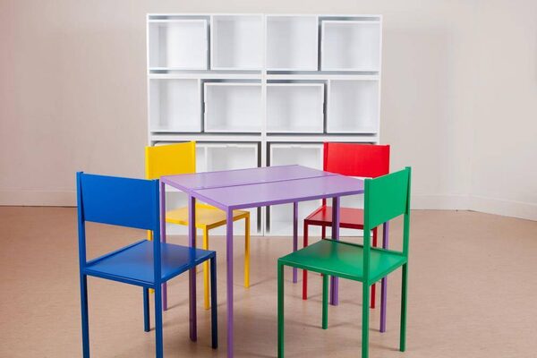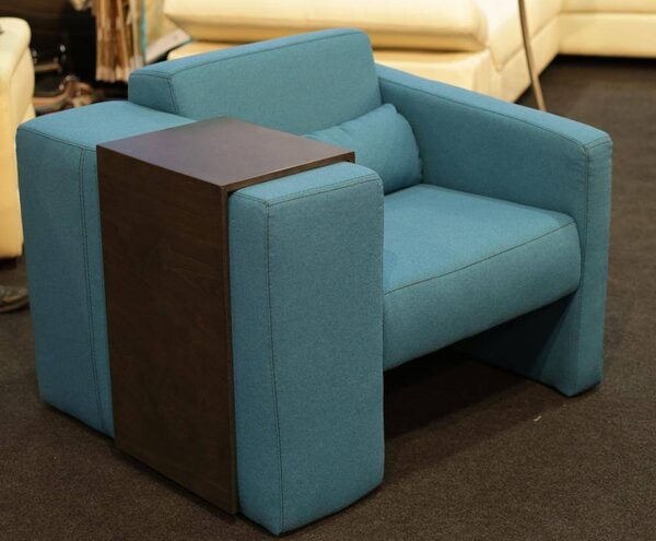 This chair has a built-in tray that Canadian fashion designer Jean-Claude Poitras designed for Fornirama that eliminates the need for a side table.