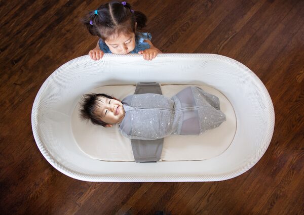 She wasn’t reacting to my child, but what my child was sleeping in. Limoo (not her real name) was zipped into what can only be described as a baby straitjacket, which was strapped in a white mesh bassinet that was rhythmically rocking and emitting whooshing white noise. “It looks like something from the future!” my friend exclaimed.