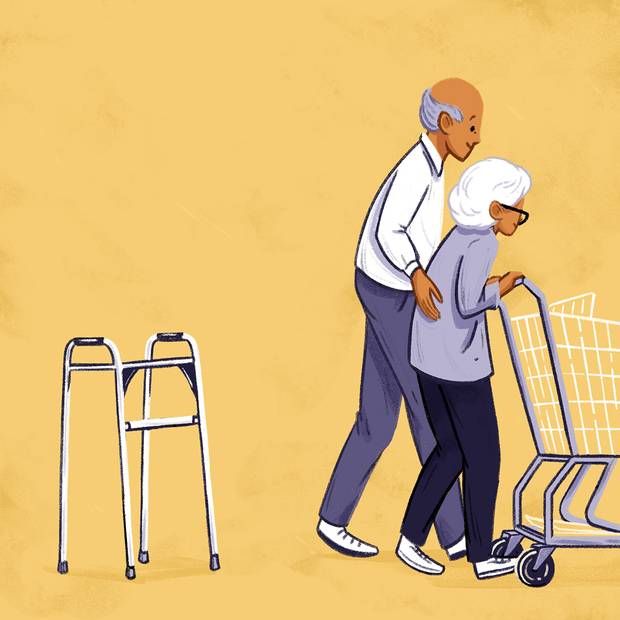 However, at the store, Mum makes the decision not to use her walker. Could it be vanity? It doesn't matter; she has 35 years on me and outranks me in all categories, including hair on the head. But her three adult children rely on me to safely return her to the retirement residence.