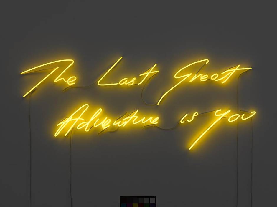 Torrid self-absorption has always been Emin’s subject. The Last Great Adventure Is You is not about you or me; it’s about her. She wrote in Strangeland, a collection of her writings about her hardscrabble life in Margate, that “I thought with my body.” By that, she meant dancing and drinking and shagging almost every man and woman in sight. She had left school at 13, the same year she lost her virginity by rape, and her art, after attending Maidstone College of Art and the Royal College of Art, combined a weird, sentimental sweetness alongside the anger and defiance. She would say and do anything. Once, she was embarrassingly drunk on TV. She would make bright neon signs saying things such as, “Is anal sex legal?” or “Fuck off and die you slag ” (written in her scrawled handwriting), as if needing to emblazon the world with her words, her voice, of “illuminated honesty” as one critic put it, and feminine angst.