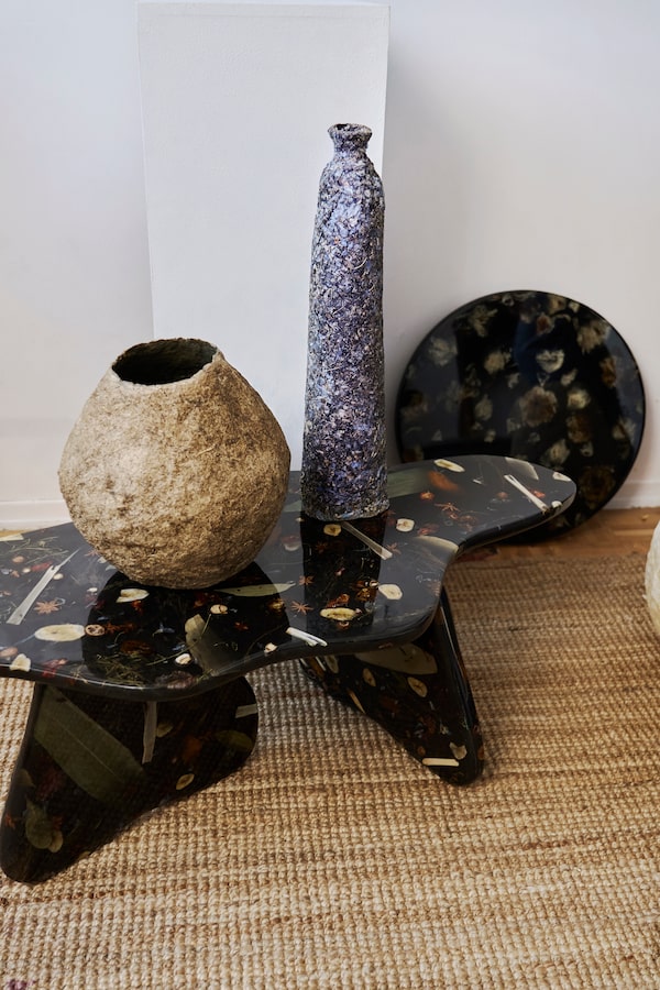 Singh’s Island Table is pictured with the artist’s Pulp vases, which are crafted from wood and floral leftovers.May Truong/The Globe and Mail