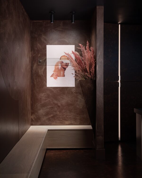 In the reception area at Vancouver fitness studio Jaybird, there’s this really deep, burnt ochre colour we chose to prompt people to get out of their head and into their bodies, or a primordial, collective unconscious. It was really anachronistic for the world of fitness to veer away from creating bright, mirror-filled spaces, but we run away from trends and instead try to unlock a narrative or emotional resonance in a space.