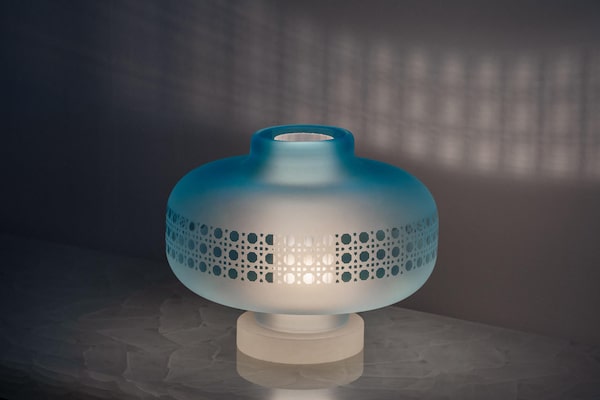 For the Goodman Studio’s latest selection of hand-blown glass table lamps, executive and creative director Sylvia Lee looked to the “timeless beauty of Asian lanterns and the intricate textures of woven patterns,” she says. The aesthetic splendour of these influences is also matched by a link to the 2025 festival’s theme. “Lanterns have long been symbols of hope and celebration – a single light can guide us home, while a grouping creates a joyful moment of togetherness. Each lamp captures this spirit, featuring elegant forms adorned with sandblasted rattan-like motifs.”
