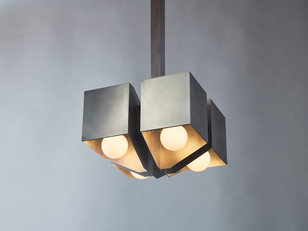 After years of brass hardware booming, cooler metals feel fresh again. They aren’t finished in reflective chrome, though, but rougher, brushed textures. At the Pelle Designs studio deep in Red Hook, Brooklyn, a sculptural illustration of this shift is the Helm lighting collection, which is available in Canada through Hollace Cluny. Originally launched in 2024, the brutalist lineup was inspired by the “crude geometries” of ductwork and industrial machines and fashioned from solid aluminum plates with obvious welds. Its latest iterations, the Helm Oblique 12 and 4, refine those corners into sharper angles.