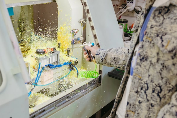 Fellow Earthlings' Chris Seggie is the CNC programmer and operator. Here he's removing a pair of Fellow Earthlings TENS collection from the split eyes fixture after a cut.Melissa Harding/The Globe and Mail