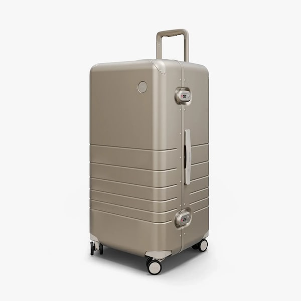 Inspired by such traditions and traveller demand, newer luggage companies, such as Monos, are adding trunk cases to their collections. “We understand the challenges of weaving through crowds of people at the airport, especially if you have a very wide, heavy suitcase without 360-degree spinner wheels,” says Kathleen Westerhout, the Vancouver brand’s senior director of product. “The Hybrid Trunk was designed to improve this experience. Its overall footprint is much narrower than a classic check-in, making travel, especially during longer journeys, a breeze.”