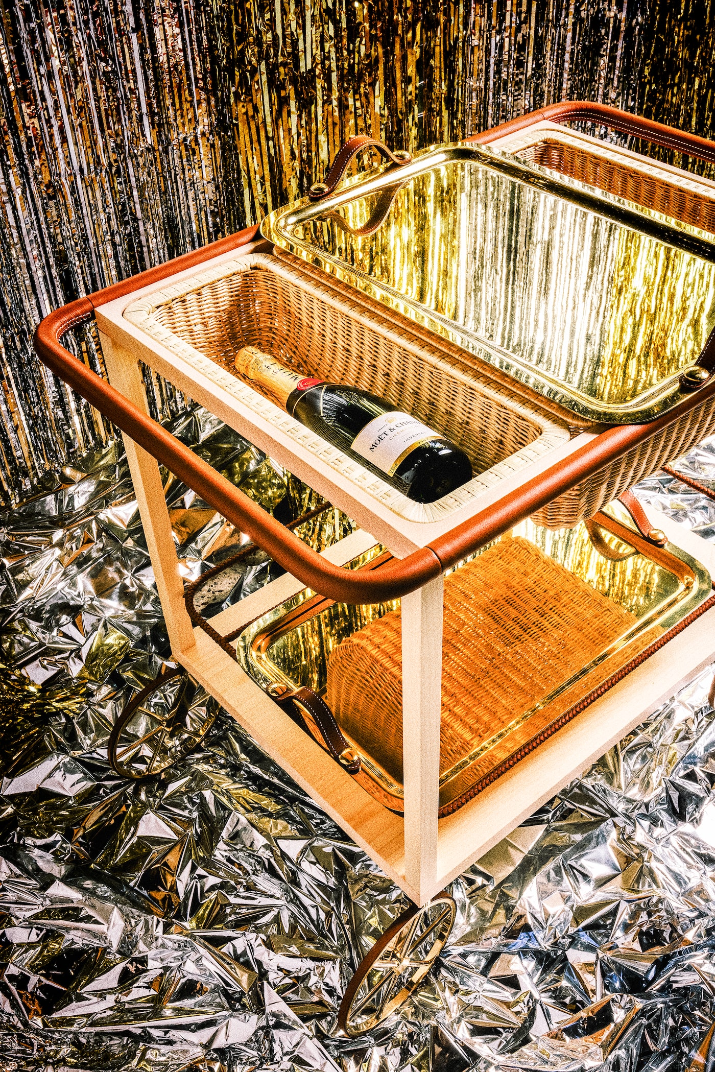 TRUNK SHOW: Louis Vuitton’s travel-friendly tri-fold mirror channels first class energy thanks to the Grand Tour-worthy flair afforded by its monogrammed canvas case. Home Mirror Trunk, $2,740 at Louis Vuitton louisvuitton.comBAR MIX: Recalling the regal lines of a stagecoach and boasting a natural maple wood frame, brass wheels and trays, and accents in taurillon H leather, Hermès’ tony trolley is the ideal perch for a bottle (or five) of festive bubbly. Diligence Équipages d’Hermès serving trolley, $54,400 at Hermès hermes.com. Moët & Chandon Impérial, $78.80 at the LCBO lcbo.com
