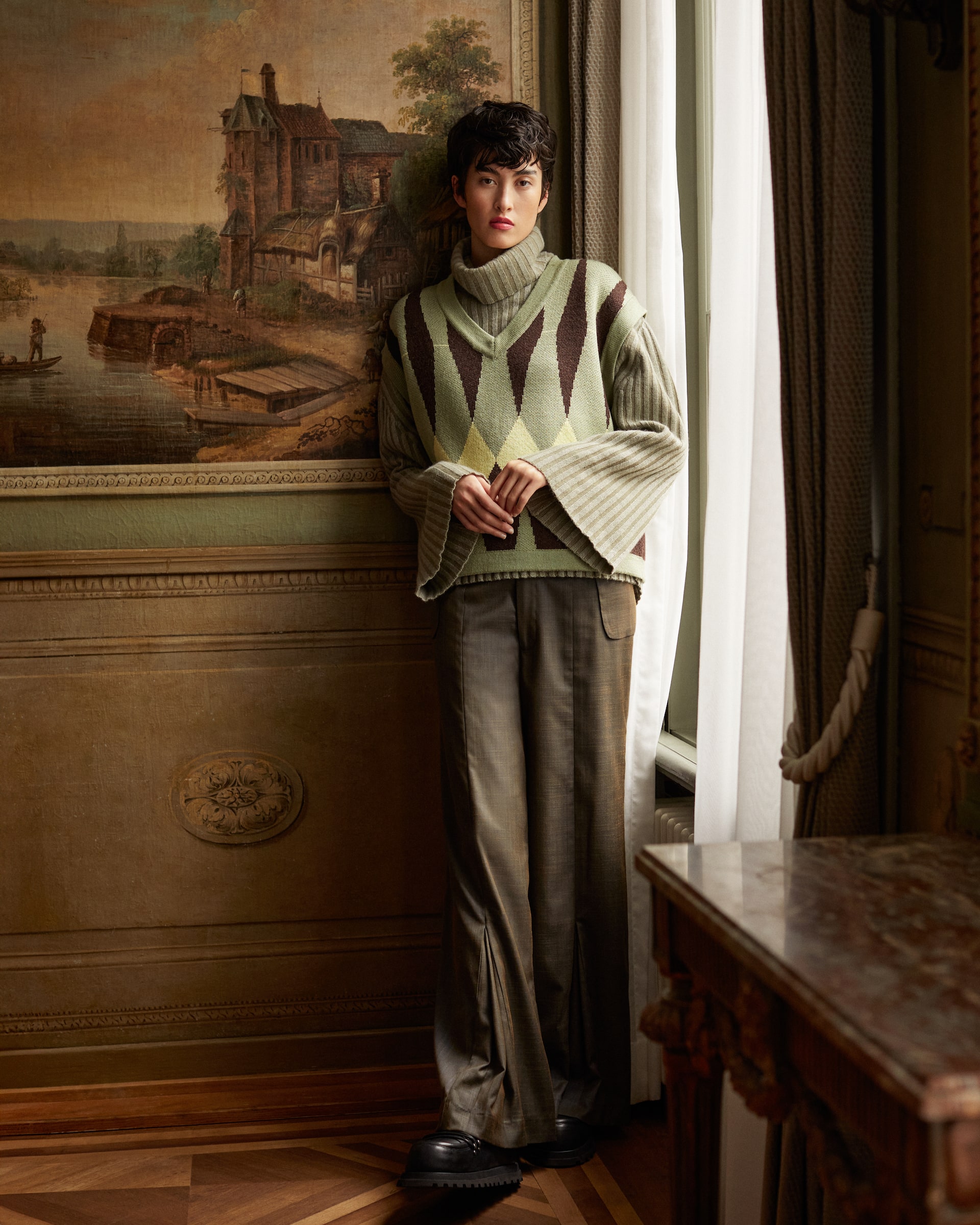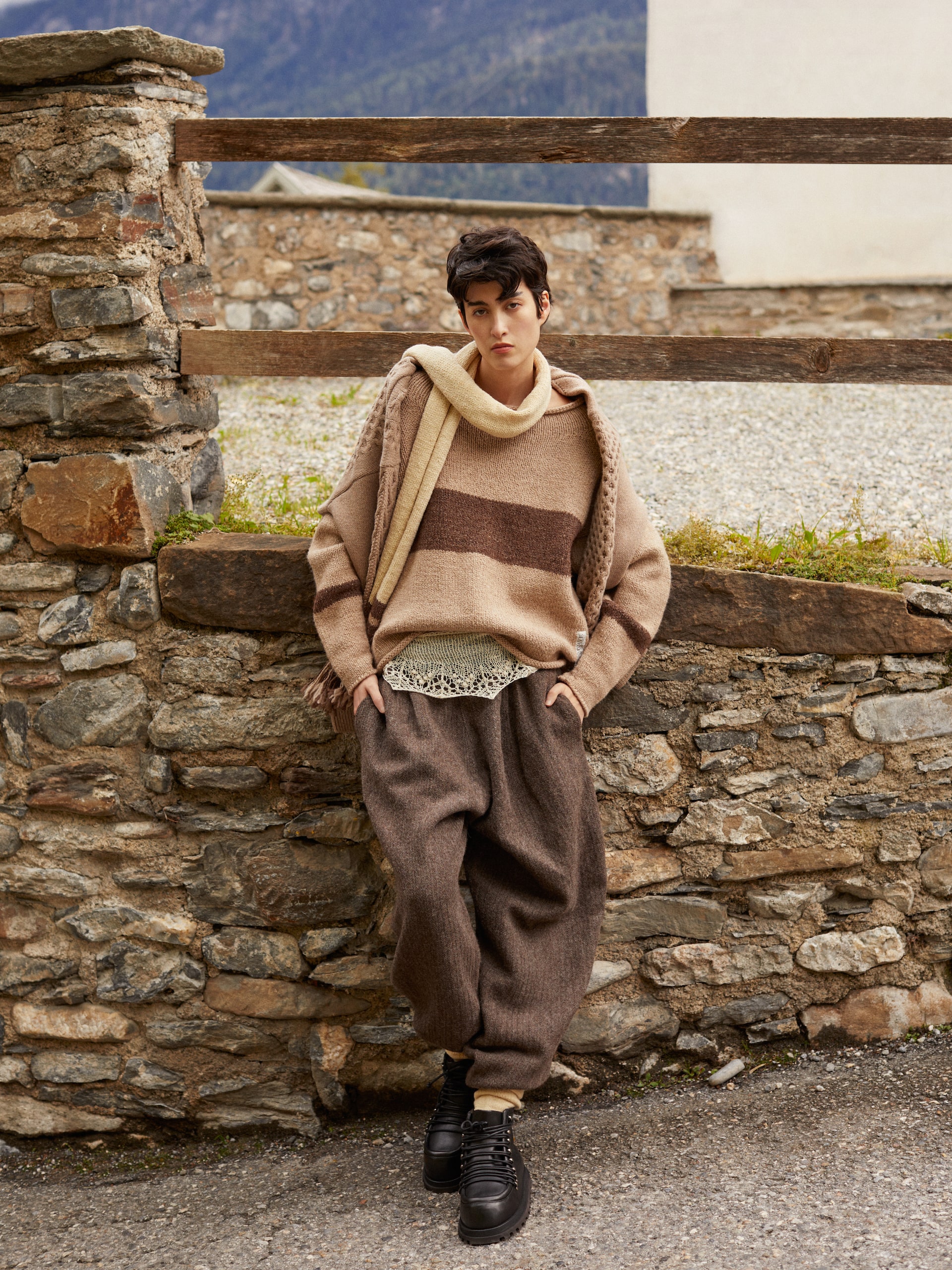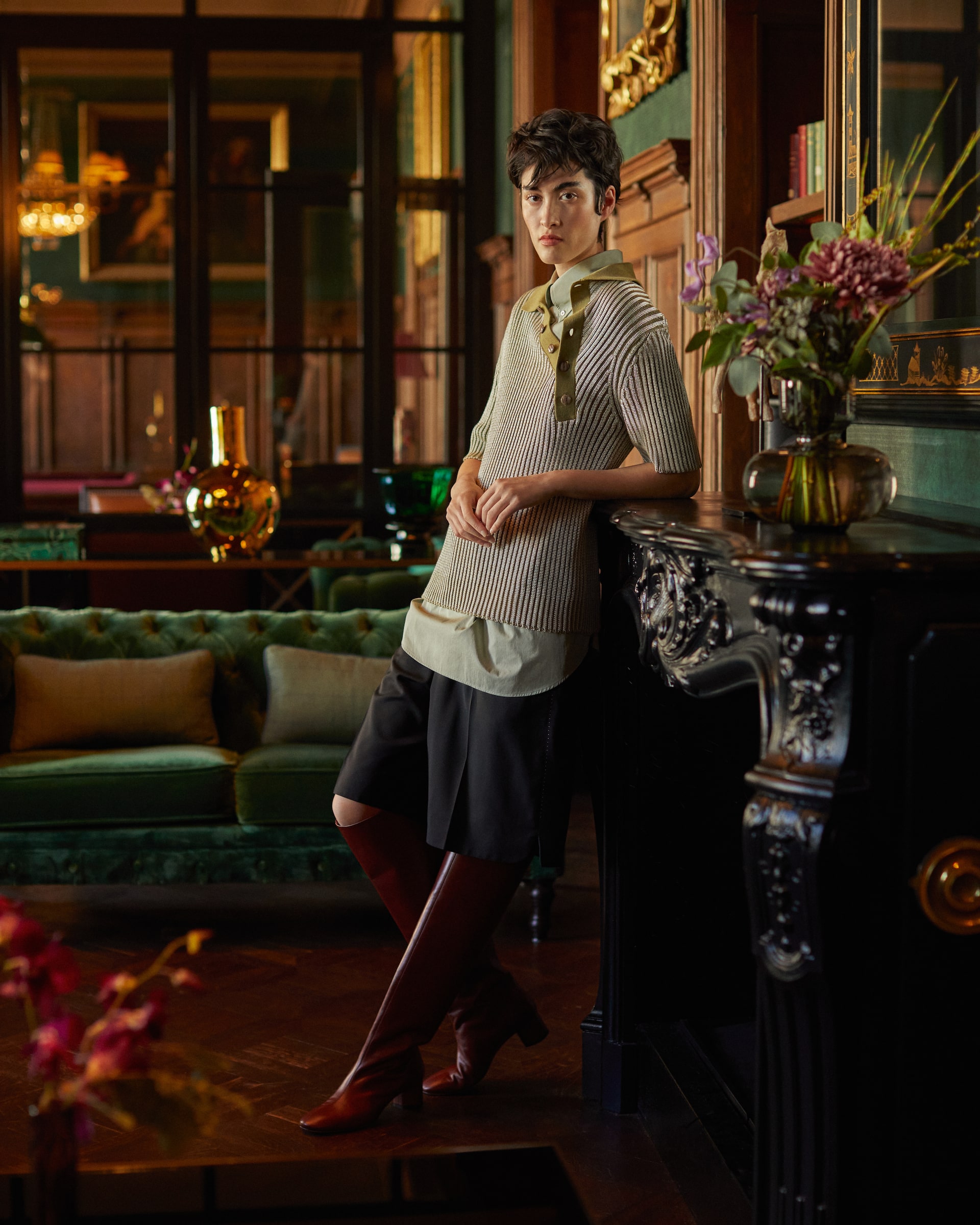 Sweater, trousers, both price on request at prada (prada.com). Photographed outside the Pavillon Le Corbusier in Zurich.