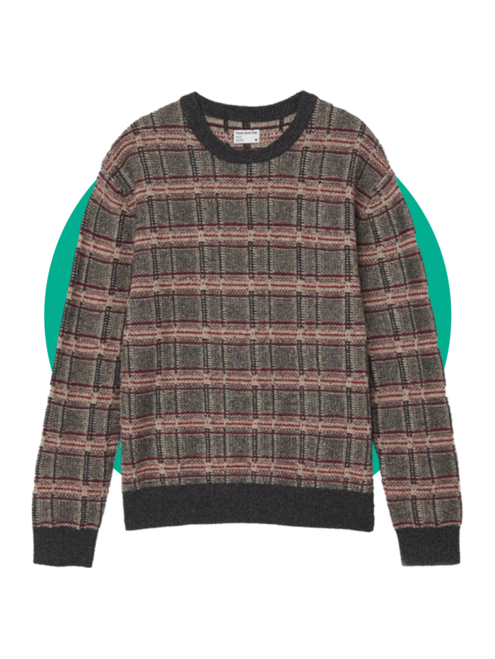 A chic patterned sweater is always a good idea to add personality to your work day, and this lambswool-and-nylon crewneck one won’t be as itchy as a 100-per-cent wool style. The nylon is even made from recycled fishing nets and ropes. Frank And Oak the Donegal sweater, buy at ca.frankandoak.com.