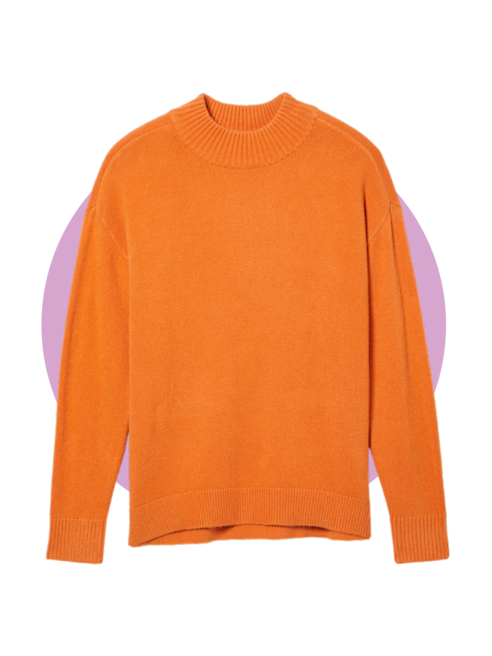 A well-priced knit is one easy way to add trendy, seasonal colours to your wardrobe. This orange mock-neck sweater can be worn loose or tucked into your favourite jeans or wide-leg pants. Just note that with this rayon-blend you’ll want to machine wash on a cold, gentle setting and lay flat to dry. Joe Fresh mock-neck sweater, buy at joefresh.com.
