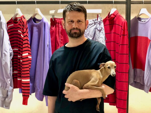 Designer Lucio Vanotti, accompanied by his miniature Italian greyhound, at White Milano.Supplied